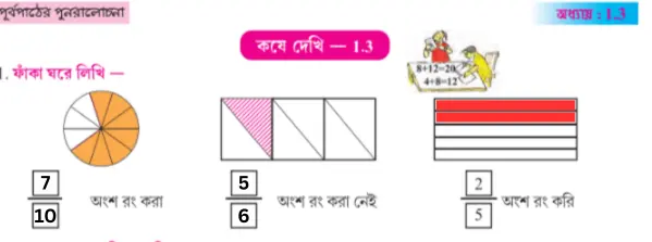 আমি খেলাম (8 – 3 – 2) = 3 টি চকোলেট 8টির মধ্যে অর্থাৎ আমি পেলাম অংশ